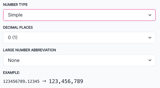 - Simple — Define the decimal places that the number should be displayed up to and any large number abbreviations.
