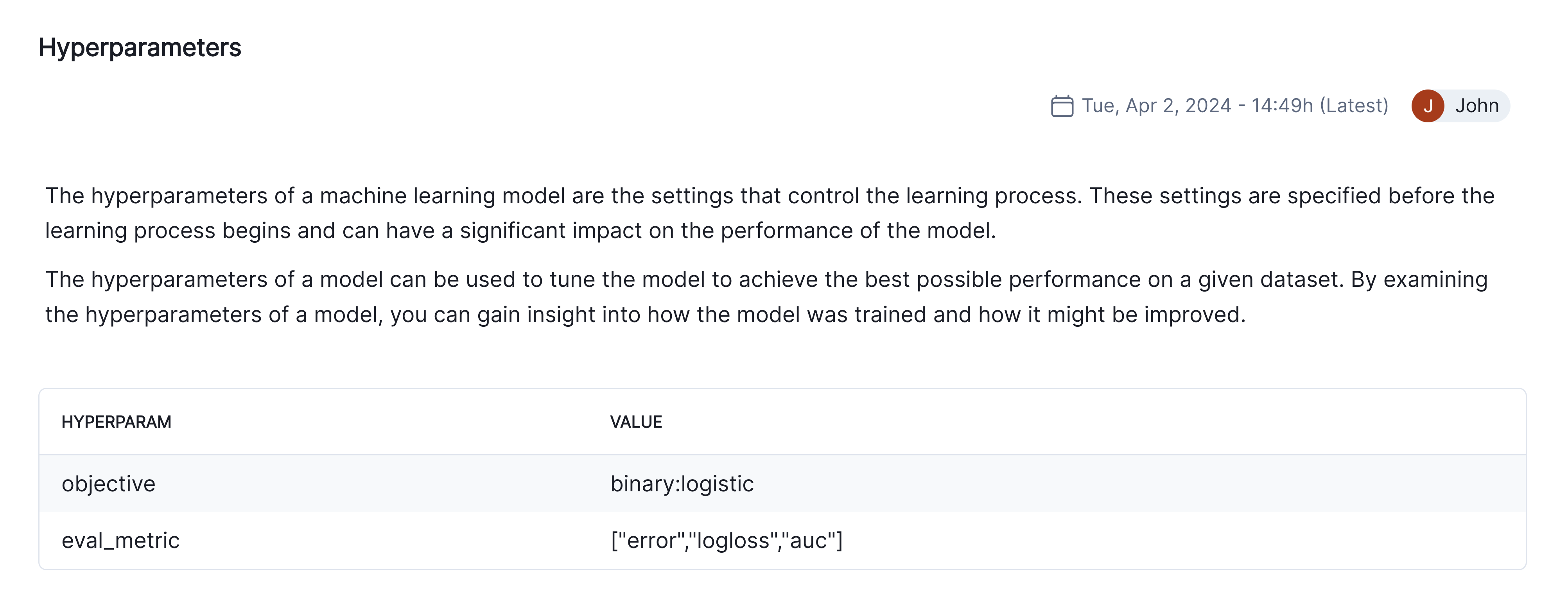 This custom test will make an external API call to get the current BTC price and display it as a table. This demonstrates how you might integrate external data sources into your model documentation in a programmatic way. You could, for instance, setup a pipeline that runs a test like this every day to keep your model documentation in sync with an external system.